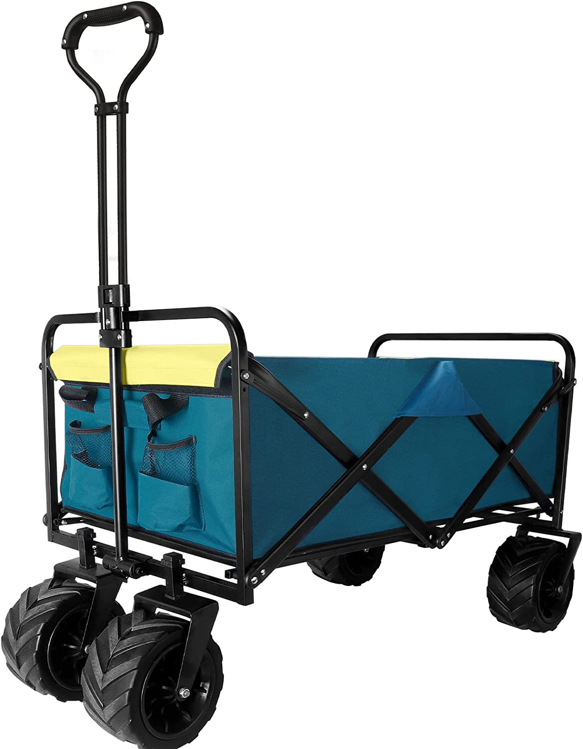 【Quick Setup and Collapse】The outdoor wagon cart with a compact design can be set up & folded in seconds without using tools. Just push center to open and pull center to fold it. It is easy to operate and transport.